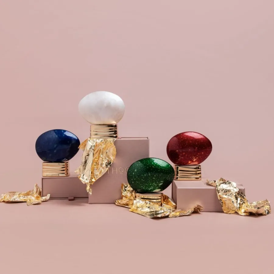 Das Ruby Red Eau de Parfum Spray trägt, wie alle Düfte von The House of Oud, einen ovalen Stein auf dem Flakon. In der Royal Stone Collection handelt es sich nicht um echte Juwelen, sondern um Steine, die von ihnen inspiriert wurden. Bei dem Ruby Red Eau de Parfum Spray ist es ein sattroter Stein, in dem goldene Elemente schimmern. Außen wie innen ist das Parfum aus der Royal Stone Collection ein echtes Kunstwerk. The House of Oud hat das Ruby Red Eau de Parfum Spray für die Menschen kreiert, für die das Besondere ganz normal ist und die das auch in ihren Düften ausdrücken.
