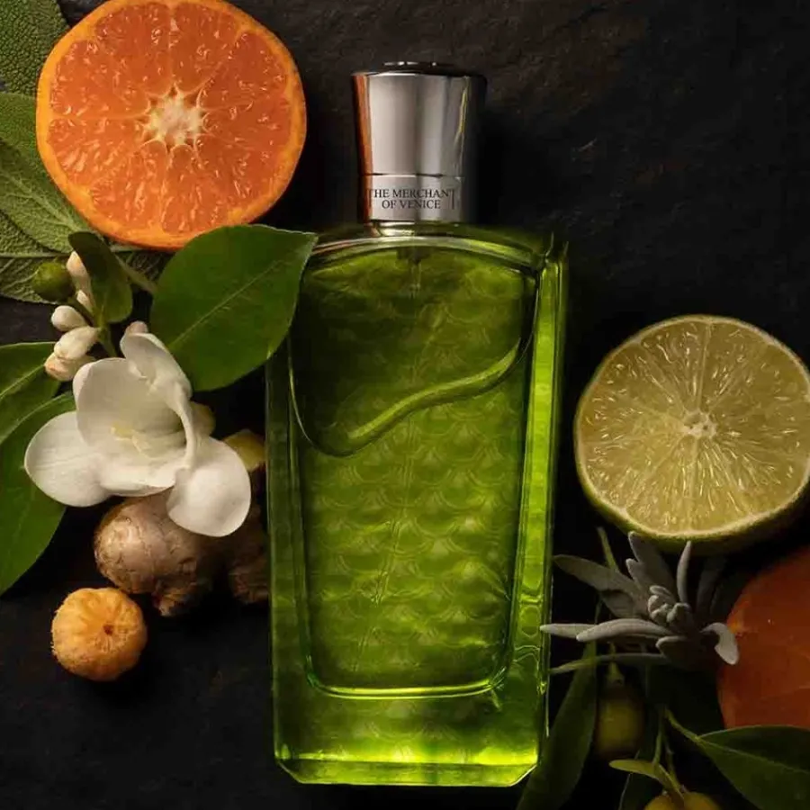 wird der Bezeichnung des „edlen Herrn“ vollumfänglich gerecht: Die Designer von THE MERCHANT OF VENICE haben ihr einen grundsätzlich lebensfrohen Charakter verliehen, dabei aber auch ruhige und kultivierte Anteile einfließen lassen. In der Kopfnote des Nobil Homo-Vertreters trifft die Frische von Bergamottefrüchten und Orangen auf die scharfen, würzigen Noten der asiatischen Ingwerwurzel. Im Herzen der Kreation entfaltet sich das romantisch anmutende Aroma des Pomeranzenblüten-Öls Neroli, das von aromatischem Rosmarin und kräftigem Salbei flankiert wird. In der Basisnote bringt das Eau de Parfum Spray „Colonia Veneziana“ mit dem Duft von Weißem Moschus und elegantem Zedernholz Männlichkeit zum Ausdruck.