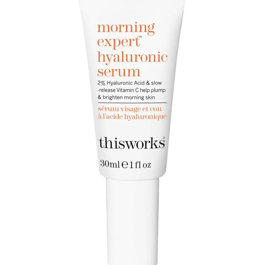 Die im Morning expert hyaloronic serum enthaltene Hyaluronsäure ist seit Langem für ihren dezent aufpolsternden Effekt bekannt. Auf diese Weise kann sie kleine Fältchen mindern. In diesem Produkt kommt sie im Gespann mit Vitamin C, das eine aufhellende Wirkung aufweist. Rosmarinöl und Pfefferminzöl runden die Komposition als vitalisierende und pflegende Inhaltsstoffe ab. Das Ergebnis ist eine Hautpflege, die den Teint glättet, festigt und zum Strahlen bringt.Das Morning expert hyaloronic serum von This Works lässt sich kinderleicht anwenden: Massieren Sie es sanft ein, bevor Sie die Feuchtigkeitscreme auftragen. Der maximale Effekt dieser Hautpflege zeigt sich bei täglicher Anwendung typischerweise nach rund vier Wochen.