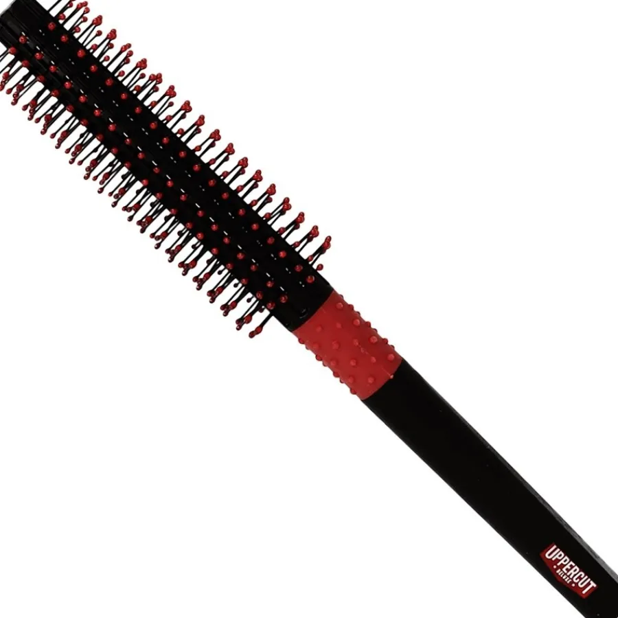 Der Quiff Roller besitzt eine längliche Form, die gut in der Hand liegt, und ist mit beschichteten Spitzen versehen. Der texturierte Griff mit Noppen sorgt ebenfalls für eine angenehme Handhabung und eine bessere Kontrolle beim Styling. Nutzen Sie die Haarstyling Tools, um dem Haar Halt, Form und Struktur zu verleihen. Auf dem Griff der schwarz-roten Rundbürste finden Sie zudem das rot-weiße Markenlogo des australischen Labels. Natürlich kann die Bürste auch zum Formen von Damenhaar genutzt werden.