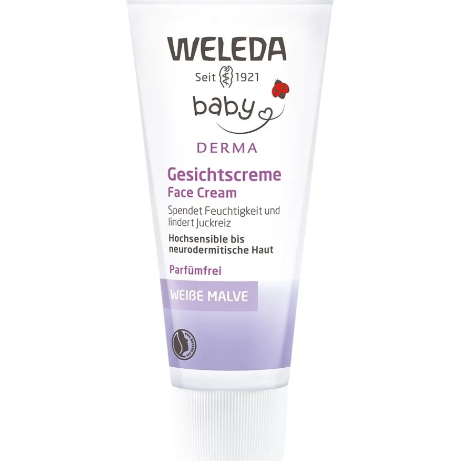 Die Weisse Malve Gesichtscreme von Weleda erfüllt gleich mehrere Aufgaben. Sie spendet Feuchtigkeit und pflegt intensiv. Darüber hinaus reduziert sie Juckreiz sowie unangenehme Spannungsgefühle. Auszüge aus Bio-Malve und Stiefmütterchen beruhigen strapazierte Gesichtspartien. Kokos- und Sesamöl hüllen die Haut in einen sanften Schutzmantel. Die Weisse Malve Gesichtscreme ist sowohl für Kinder als auch für Erwachsene mit sensibler Haut geeignet. Sie wird morgens nach der Reinigung aufgetragen. Verteilen Sie die Tagespflege gleichmäßig auf Gesicht, Hals und Dekolleté. Sichern Sie sich zudem die milden Weleda-Reinigungsprodukte für empfindliche Haut!