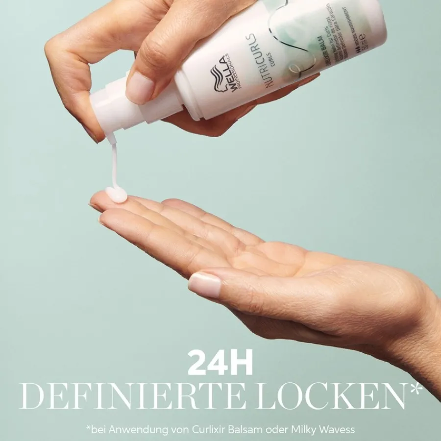 Mit dem Curlixier Balm erhalten wellige oder lockige Haare genau die richtige Menge an Nährstoffen und Pflege, um definiert zu sein. Alle Produkte der NutriCurls Reihe enthalten einen speziellen Pflegekomplex, bestehend aus Jojobaöl und Weizenkleieextrakt. Diese Kombination an Pflegestoffen hilft dabei, Frizz in Locken und Wellen zu reduzieren. Sie erhalten weiche, gut zu kontrollierende Wellen und Locken mit viel Sprungkraft. Den Curlixier Balm von Wella können Sie auf das noch feuchte, handtuchtrockene Haar sprühen. Konzentrieren Sie sich dabei vor allem auf die Spitzen. Wünschen Sie sich etwas mehr Definition für Ihre Locken oder Wellen, dann wenden Sie das Produkt auf trockenem Haar an. Bestellen Sie den Curlixier Balm und andere Haarpflegeprodukte aus der NutriCurls Serie von Wella gleich hier und stellen Sie ein individuelles Pflegeprogramm für Ihre Haare zusammen.