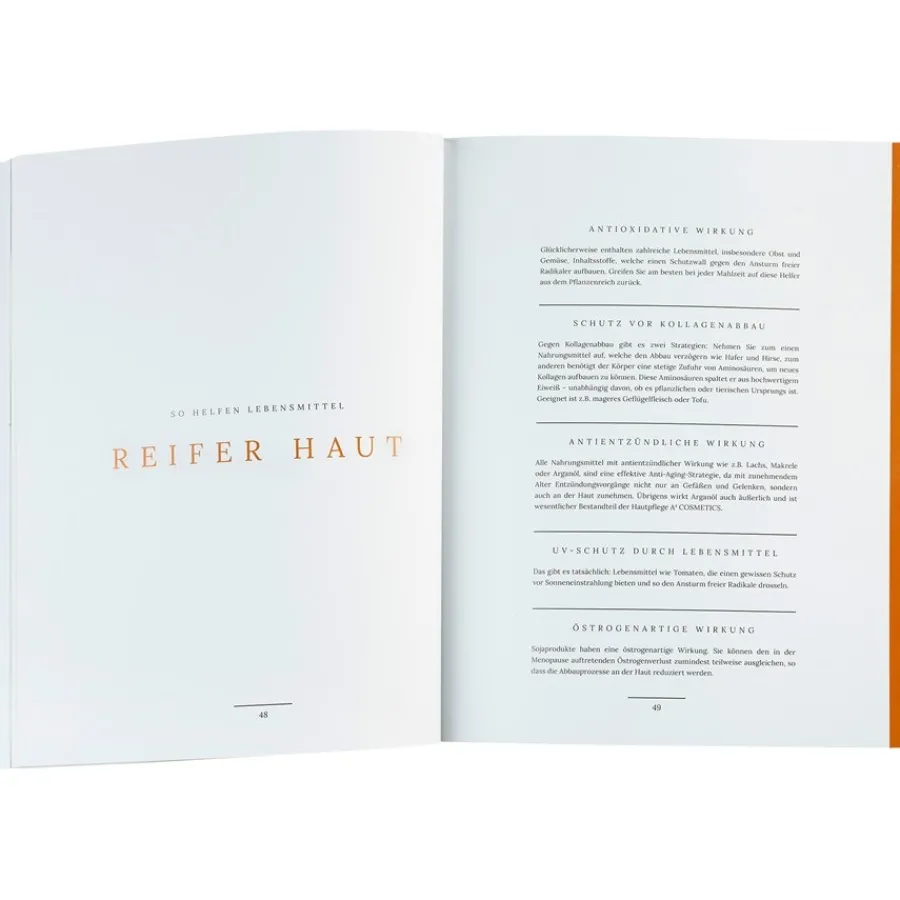 Die beiden Autorinnen erklären in den einzelnen Kapiteln des Buches auch viele Zusammenhänge zwischen den Inhaltsstoffen von Nahrungsmitteln und den Auswirkungen auf die Gesundheit der Haut. Bücher wie der Ratgeber von Dr. Susanne Kammerer – Schön essen! begeistern auch mit farbenfrohen Bildern, die die Umsetzung der vielen wertvollen Ratschläge leichtmachen. Mit dieser Art Bücher entdecken sich Damen noch einmal neu. Accessoires Bücher wie das Buch von Dr. Susanne Kammerer – Schön essen! sind immer eine gute Investition in die Gesundheit.