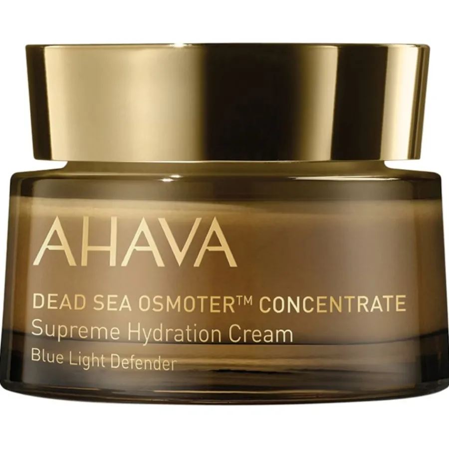 Damit Haut geschmeidig bleibt und glatt aussieht, benötigt sie vor allem ausreichend Feuchtigkeit. Die Inhaltsstoffe der Supreme Hydration Cream verbessern die Feuchtigkeitsbindung in den Hautzellen. Sie wurde speziell entwickelt, um die Gesichtshaut vor belastenden Umwelteinflüssen wie einem Übermaß blauen Lichts zu schützen. Ein besonderer Pflegefaktor ist der Dead Sea Osmoter von Ahava. Dieser innovative, mineralische Pflegewirkstoff wirkt als Katalysator und verstärkt die Pflegewirkung.Die intensiv pflegende Hautcreme wird nach der Reinigung sanft einmassiert. Durch ihre samtartige Textur fühlt sie sich angenehm und erfrischend an. Dank der wertvollen Inhaltsstoffe ist sie für normale, sensible und anspruchsvolle Haut gleichermaßen gut geeignet. Bei regelmäßiger Gesichtspflege kann der Dead Sea Osmoter die Hautschichten mit viel Feuchtigkeit versorgen. Er wirkt glättend und unterstützt die natürliche Regenerationsfähigkeit der Hautzellen.