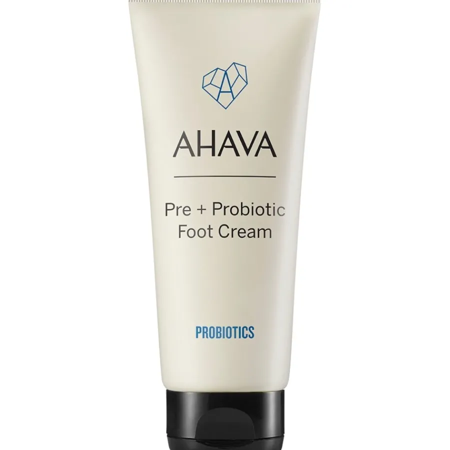 Die Pre + Probiotic Foot Cream aus der Serie Probiotics von Ahava pflegt trockene, raue und rissige Füße geschmeidig weich und versorgt sie mit wertvollen Nährstoffen. Sie kräftigt die natürliche Hautbarriere, bietet der Haut optimalen Schutz vor äußeren Stressfaktoren und spendet ihr intensiv Feuchtigkeit. Bei regelmäßiger Anwendung macht sie die Füße widerstandsfähiger gegenüber Belastungen. Ihre Formel ist für alle Hauttypen geeignet. Massieren Sie die Creme bei Bedarf in die Haut der gereinigten Füße ein. Genießen Sie geschmeidig weiche, erholte Füße!