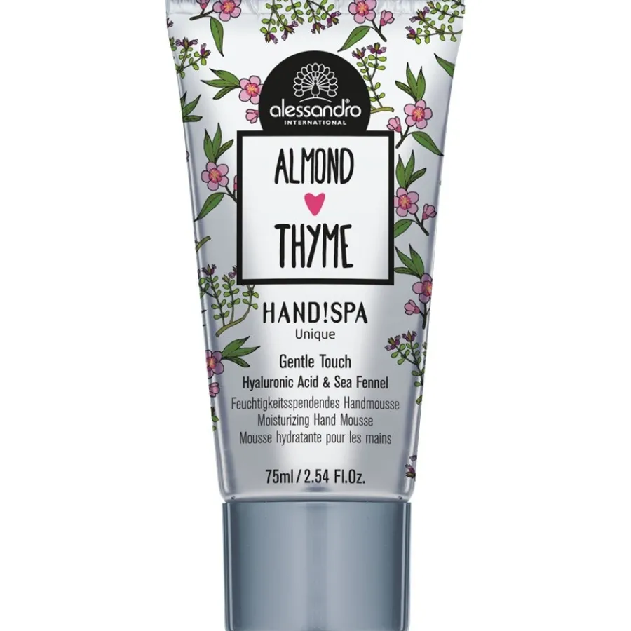Hochwertige Inhaltsstoffe machen das Gentle Touch Moisturizing Hand Mousse aus der Hand!Spa Serie von Alessandro zu einer Luxus-Handpflege für jeden Tag. Thymian und Mandelöl spenden intensive Feuchtigkeit und nähren die Haut an den Händen bis in die Tiefen. Extrakte aus der Seefenchel stärken die natürliche Schutzbarriere der Haut, während die enthaltene Hyaluronsäure vor frühzeitiger Hautalterung schützt. Das Mousse besitzt zudem eine besonders leichte Textur, fettet nicht und zieht schnell ein. Ihre Hände fühlen sich super geschmeidig und samtig weich an. Toll ist auch der zarte Duft, der Ihnen lange Zeit erhalten bleibt.Für noch mehr Wellnesspflege für die Hände entdecken Sie in unserem Onlineshop die weiteren Produkte aus der Hand!Spa Serie von Alessandro.