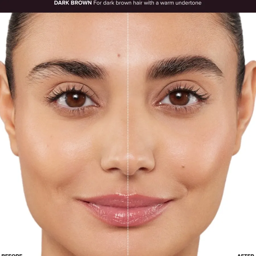 SCHRITT 3: ABRUNDEN Überschüssiges Produkt vom Mini Brow Freeze Gel-Applikator vor dem Auftragen abwischen. Nur eine kleine Menge verwenden. Mit der langen Borstenseite beginnen, um die Haare zu kämmen und zu trennen. Dann mit der kurzen Borstenseite modellieren und in Form bringen. Für einen laminierten Effekt mit abgeflachter Seite Brauenhärchen andrücken.