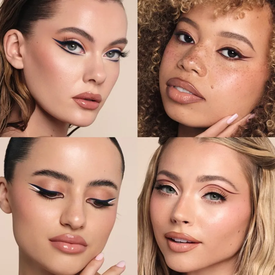 – Für einen Cateye-Look beginnen Sie beim Auftragen mit einem Punkt entlang der Wimpernlinie, um die Richtung des Liners abzubilden. Zeichnen Sie zuerst das hintere Ende und ziehen Sie dabei eine Linie, die vom Wimpernkranz nach außen verläuft. Zeichnen Sie dann eine gerade Linie, die in der Mitte des Lids beginnt und an das Cateye anschließt. Ziehen Sie die Wimpernlinie von der Mitte des Lids in Richtung der inneren Augenwinkel. Füllen Sie abschließend die Umrisse aus, um den Look zu vervollständigen.