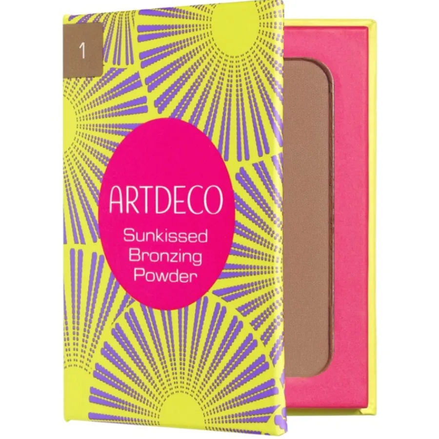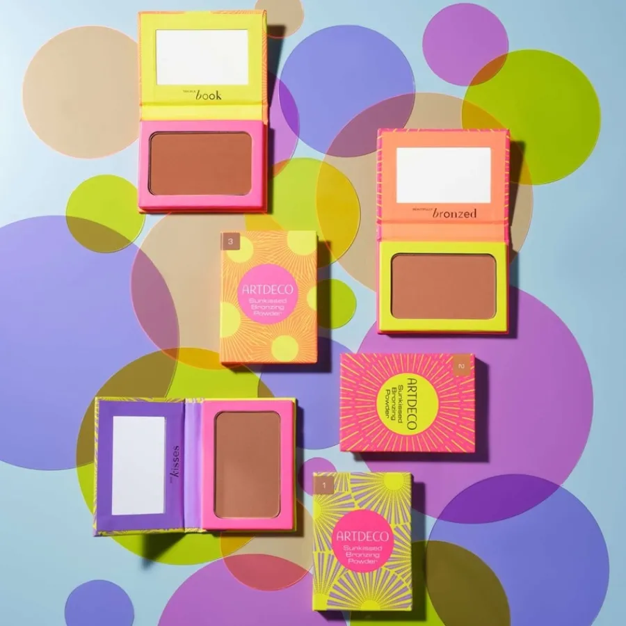 Das Case des Sunkissed Bronzing Powder Limited Edition ist elegant und zieht mit leuchtenden Neon-Farben die Blicke auf sich. Es ist geformt wie ein schlankes kleines Buch und hat natürlich einen Spiegel im Deckel. So lässt sich das Make-up überall und sofort einfach auffrischen oder überprüfen. Das Puder & Rouge von ARTDECO ist vegan, für die empfindliche Haut geeignet und verzichtet auf Nano-Partikel, Parabene, PEG und Parfum. Das verwendete Palmöl stammt aus nachhaltiger Produktion und ist RSPO-zertifiziert.