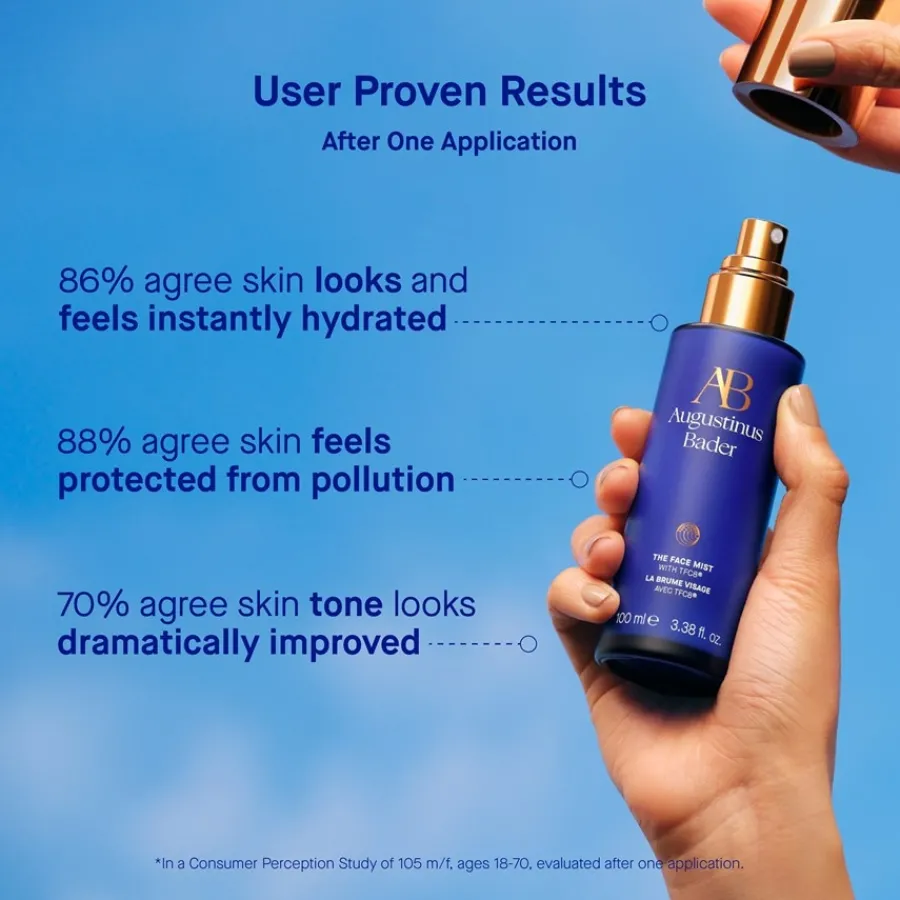 Das Gesichtsspray The Face Mist von Augustinus Bader enthält die reichhaltige Hautpflegeformel TFC8. Diese besteht aus wertvollen Pflegestoffen wie Aminosäuren, Vitaminen und natürlichen Peptiden, welche die Haut schützen und mit wichtigen Nährstoffen versorgen. Die eigens entwickelte Formel schützt die Haut und unterstützt diese bei ihrer Regeneration. Des Weiteren besteht das Produkt aus einem hochwertigen Rosenwasser, welches das Gesicht erstrahlen lässt und die umfassende Hautpflege letztendlich vervollständigt. Der zarte Rosenduft verleiht der täglichen Gesichtspflege zudem das gewisse Etwas.