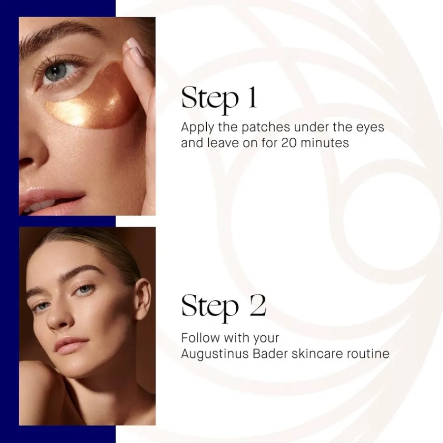 Nach der Gesichtsreinigung legen Sie die Hautpflege-Patches für das Gesicht auf die saubere, trockene Partie unter den Augen. Nach einer Einwirkzeit von 20 Minuten nehmen Sie die Augenpads ab. Verwöhnen Sie Ihre Haut nach der Anwendung mit einer zum Hauttyp passenden Hautpflege von Augustinus Bader. Optimale Ergebnisse erzielen Sie, wenn Sie die Eye Patches zwei- bis dreimal pro Woche anwenden. Bei Bedarf spricht auf nichts gegen eine häufigere Anwendung.