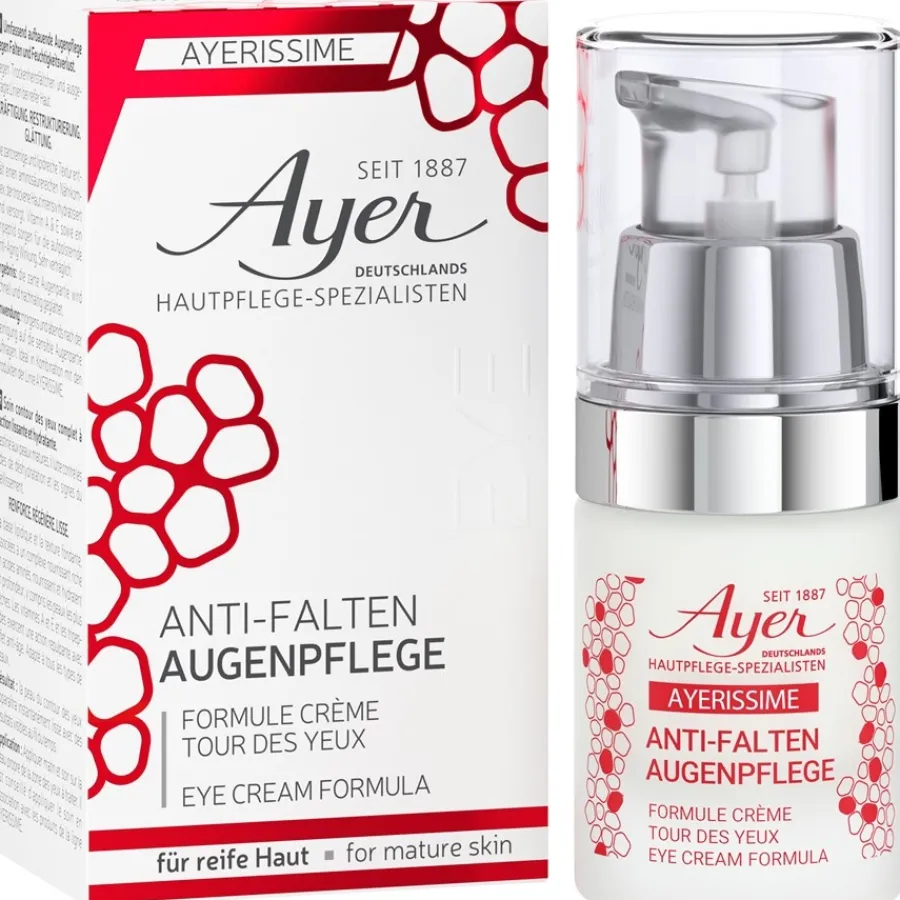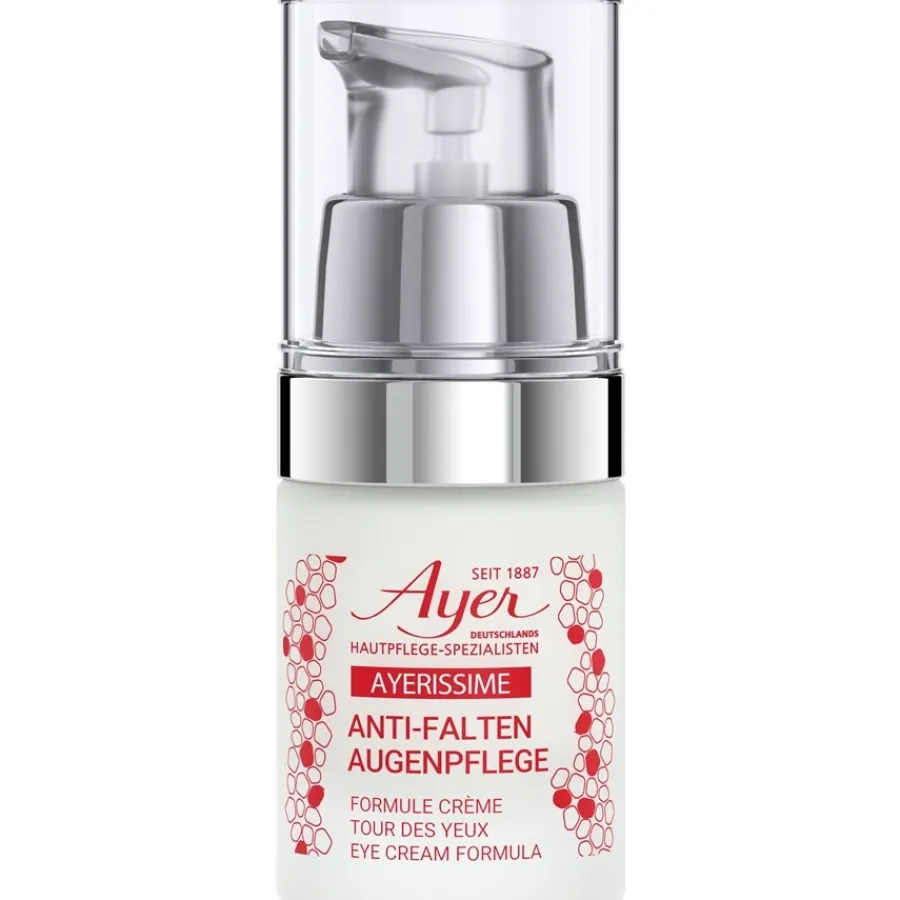 Die Ayerissime Eye Cream Formula von Ayer pflegt die sensible Haut der Augenpartie intensiv und spendet ihr Energie. Sie hydratisiert die Haut und bekämpft Müdigkeitserscheinungen und Krähenfüße. Trockenheitsfältchen und ausgeprägte Linien glättet sie sanft. Sie fördert die Regeneration der Haut und stärkt sie. Ihre hauchfeine Textur verströmt beim Auftragen einen betörenden Duft. Tragen Sie die Augenpflege jeden Morgen und Abend nach der Reinigung auf die Haut rund um die Augen auf. Erleben Sie eine strahlend frische, straffe und seidig zarte Augenpartie!