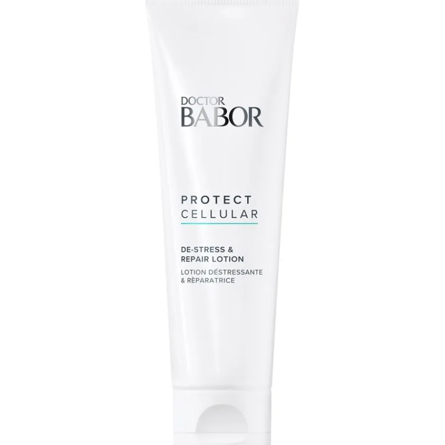 Die Doctor BABOR Protect Cellular De-Stress & Repair Lotion von BABOR bietet der Haut optimalen Schutz und sorgt für eine länger anhaltende Sonnenbräune. Sie spendet der Haut Feuchtigkeit, regeneriert sie und beruhigt Spannungsgefühle und Irritationen. Ihre leichte Textur zieht schnell ein und hinterlässt ein angenehm kühles Gefühl auf der Haut. Selbst nach längerer Sonneneinstrahlung schenkt sie der Haut Entspannung. Tragen Sie die Gesichtspflege nach dem Sonnenbad sanft auf die gereinigte, trockene Haut auf. Erleben Sie samtweiche, gesunde Haut und eine lang anhaltende, natürliche und gleichmäßige Bräune!