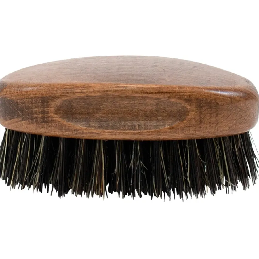 Bartbürsten sind oft oval, damit sie gut in der Hand liegen. Es gibt sie aber auch in rund oder mit einem klassischen Bürstenkörper. Im Gegensatz zu einem Bartkamm sind sie etwas sanfter zu den Barthaaren. Darüber hinaus haben sie durch die Anordnung der Borsten oft auch eine reinigende Wirkung. Je nach Modell sind die Borsten synthetisch oder tierisch.