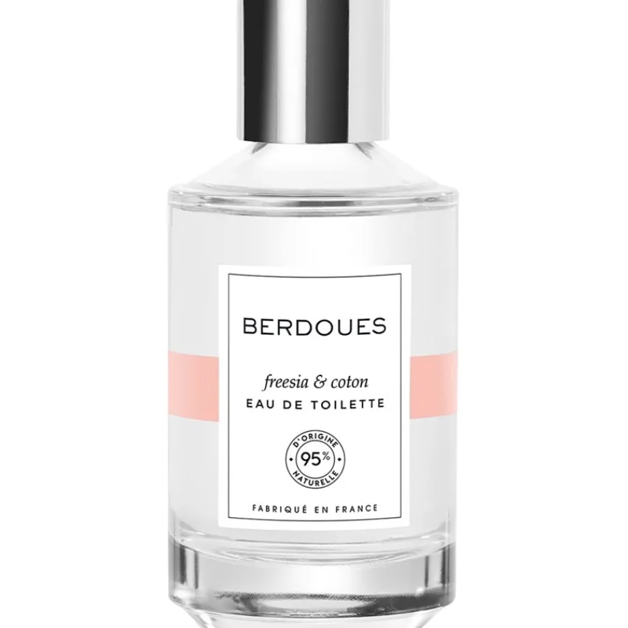 Das Eau de Toilette Spray Freesia & Coton ist ein „Sauberduft“. Er erinnert an frisch gewaschene Wäsche, die gerade in der Sonne trocknet, den Duft, der aus der Waschküche kommt und den man unwillkürlich mit einer heilen Kinderwelt verbindet. Gleichzeitig ist das Eau de Toilette Spray Freesia & Coton ein eleganter, feiner Unisexduft, der ideal für die heißen Tage des Jahres ist. Seine Natürlichkeit strahlt eine lässige Eleganz aus, die typisch für die Berdoues Eau de Toilette 95 % Organics Kollektion ist. Vor allem, weil der Duft sich auf der Haut der Damen und Herren ganz unterschiedlich, aber immer frisch entwickelt.