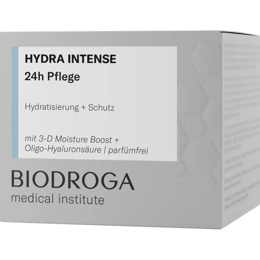 Hydra Intense von Biodroga MD ist eine extra reichhaltige Feuchtigkeitspflege. Besonders gut geeignet ist sie durch ihren ausbalancierten Pflegekomplex für trockene bis sehr trockene Haut. Die 24H Pflege hydratisiert und aktiviert die hauteigene Feuchtigkeitsbindung. Tragen Sie die Creme auf die saubere Haut auf und reiben Sie sie sanft ein.Die 24H Pflege Hydra Intense setzt auf Inhaltsstoffe wie Oligo-Hyaluronsäure, Ceramide und 3D Moisture Boost. Neben der lang andauernden Versorgung mit Feuchtigkeit gewährleisten diese eine zuverlässige Pflege. Trockene Stellen werden geglättet. Gleichzeitig lassen unangenehme Spannungsgefühle nach. Die Hautpflege bekommen Sie in einem ergiebigen Glas-Container mit 50 ml Inhalt. Sie wird nur zur Anwendung im Gesichtsbereich empfohlen. Haben Sie keine trockene Haut, greifen Sie lieber auf eine konventionelle Tagespflege zurück.