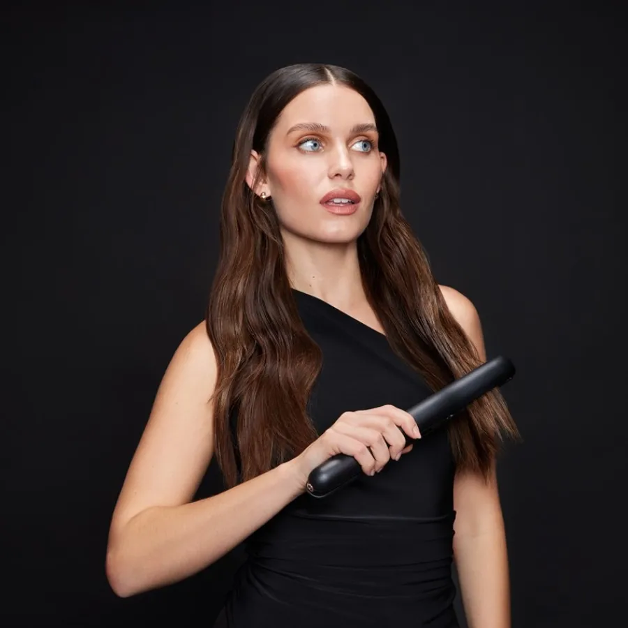 5. Drehe das Original Cordless Iron bei jeder Strähne von deinem Gesicht weg und gleite von der Wurzel bis zur Spitze. Sericit und Turmalin versiegeln die Haarstruktur und spenden Feuchtigkeit für mehr Glanz.