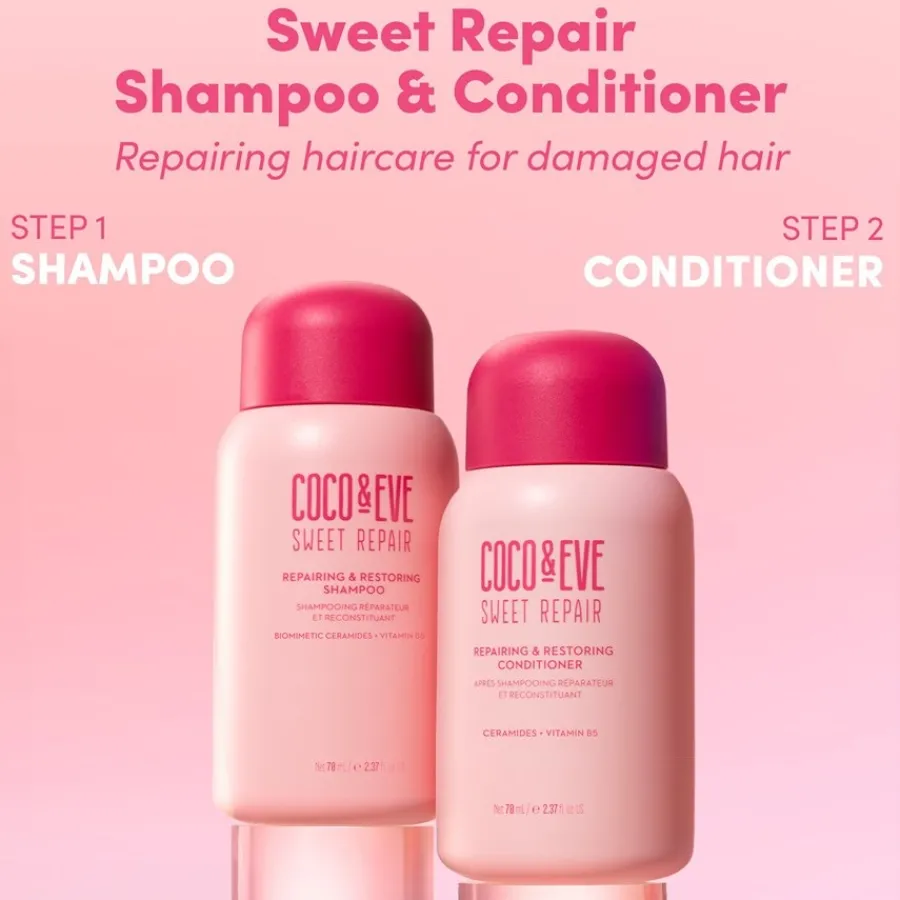 Mit seiner wohlkonzeptionierten Formel setzt der Repairing & Restoring Conditioner dort an, wo klassische Produkte nicht mehr mithalten können. Dies sind beispielsweise Schäden, die hitzebedingt durch die Verwendung ungeeigneter Glätteisen, Lockenstäbe oder Föhne entstehen. Oft zeigt sich in den Haarlängen unschöner Spliss. Auch dieser ist ein Fall für COCO & EVE Sweet Repair. Zeit, bei derartigen Gegebenheiten die Haarpflege auf ein neues Level zu bringen. Verwöhnen Sie sich und Ihr strapaziertes Haar mit dieser nährenden Portion Pflege!