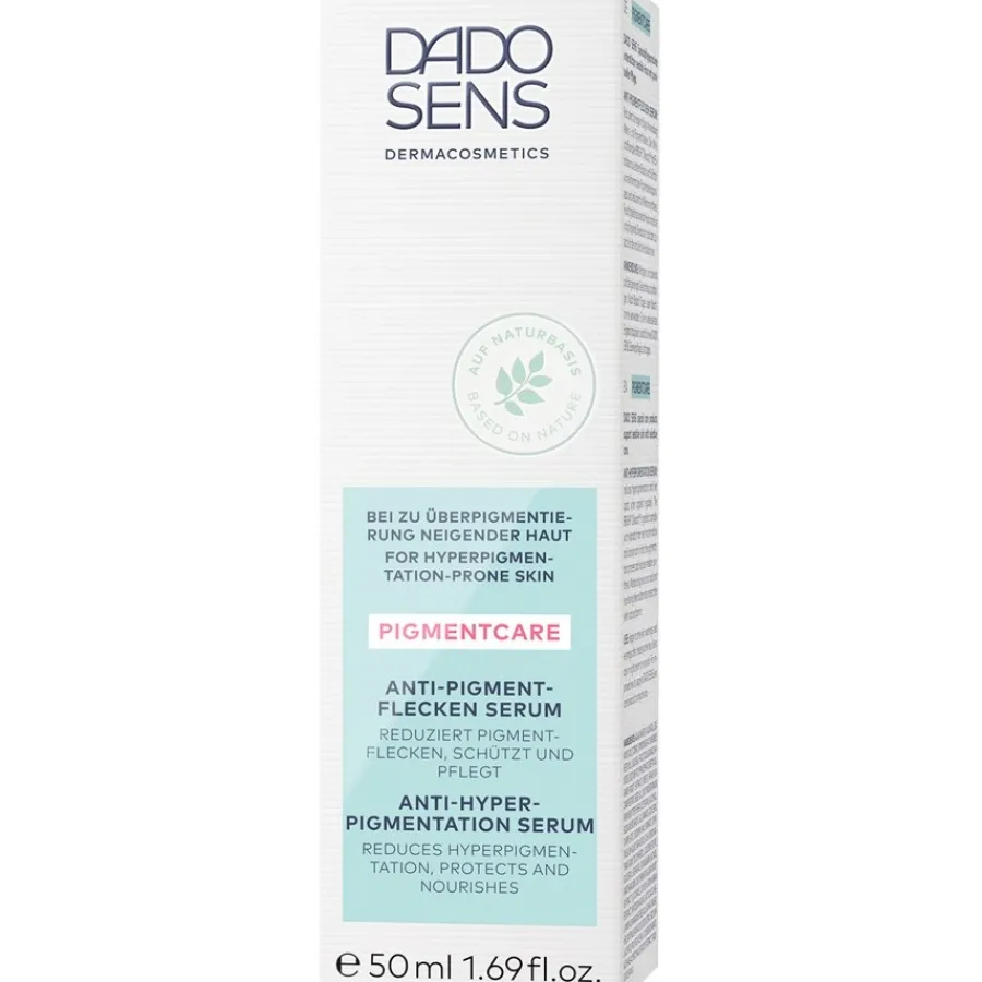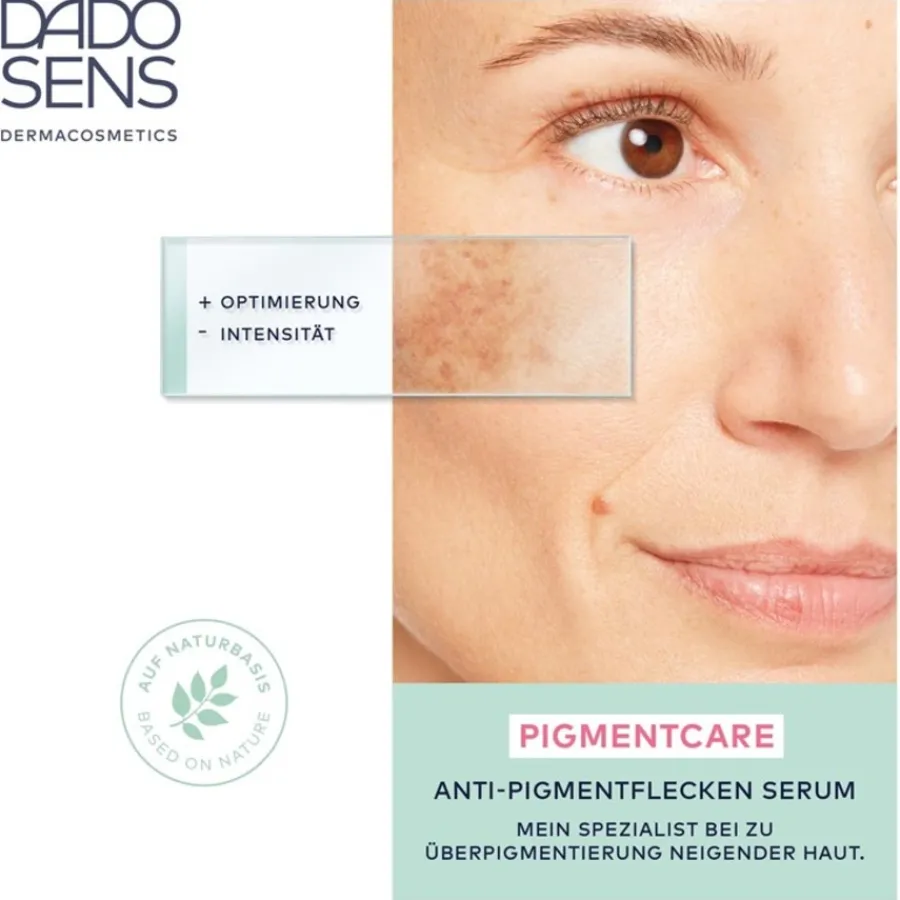 Das SPEZIALPFLEGE Anti-Pigmentflecken Serum von DADO SENS bekämpft Altersflecken und gleicht den Hautton aus. Mit seinen kraftvollen Inhaltsstoffen hemmt es die Melaninsynthese und dadurch die Bildung von Pigmentflecken. Es hydratisiert die Haut, revitalisiert sie und schützt die Hautbarriere. Seine Formel ist vegan und frei von Tierversuchen. Es eignet sich für alle Hauttypen, vor allem für reife, anspruchsvolle Haut. Auch bei sensibler Haut kann es angewendet werden. Tragen Sie das Serum jeden Morgen und Abend auf Ihr gereinigtes Gesicht auf. Freuen Sie sich über gleichmäßig glatte Haut und einen makellos schönen Teint!