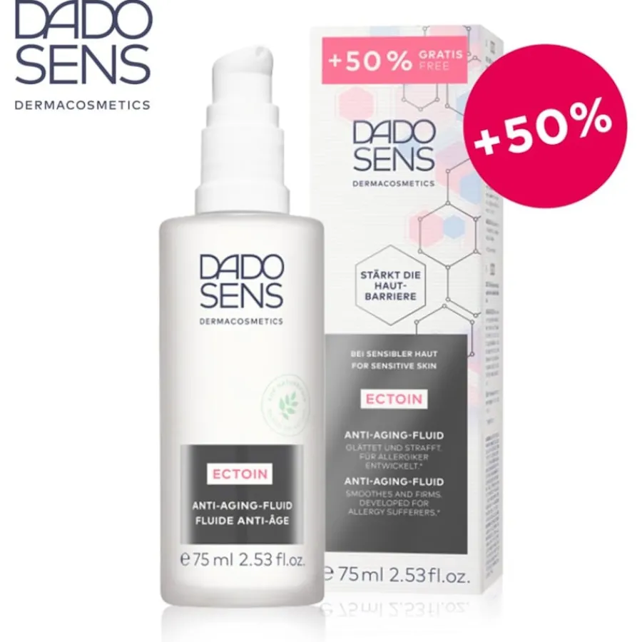 Diese Gesichtspflege wurde ausnahmslos mit gut verträglichen Inhaltsstoffen angereichert. Unter anderem enthält sie Ectoin und Isoflavone. Sie spendet intensive Feuchtigkeit und fördert die natürliche Vitalität der Hautzellen. Das Ectoin Anti-Aging Fluid ist frei von Parfum, Farbstoffen, Paraffin, Silikon und Tierextrakten. Und so funktioniert die Anwendung der Gesichtspflege: Verteilen Sie das Anti-Aging-Fluid sowohl morgens als auch abends auf dem gereinigten Gesicht. Bei Bedarf können Sie anschließend eine Tages- oder Nachtcreme von DADO SENS auftragen.