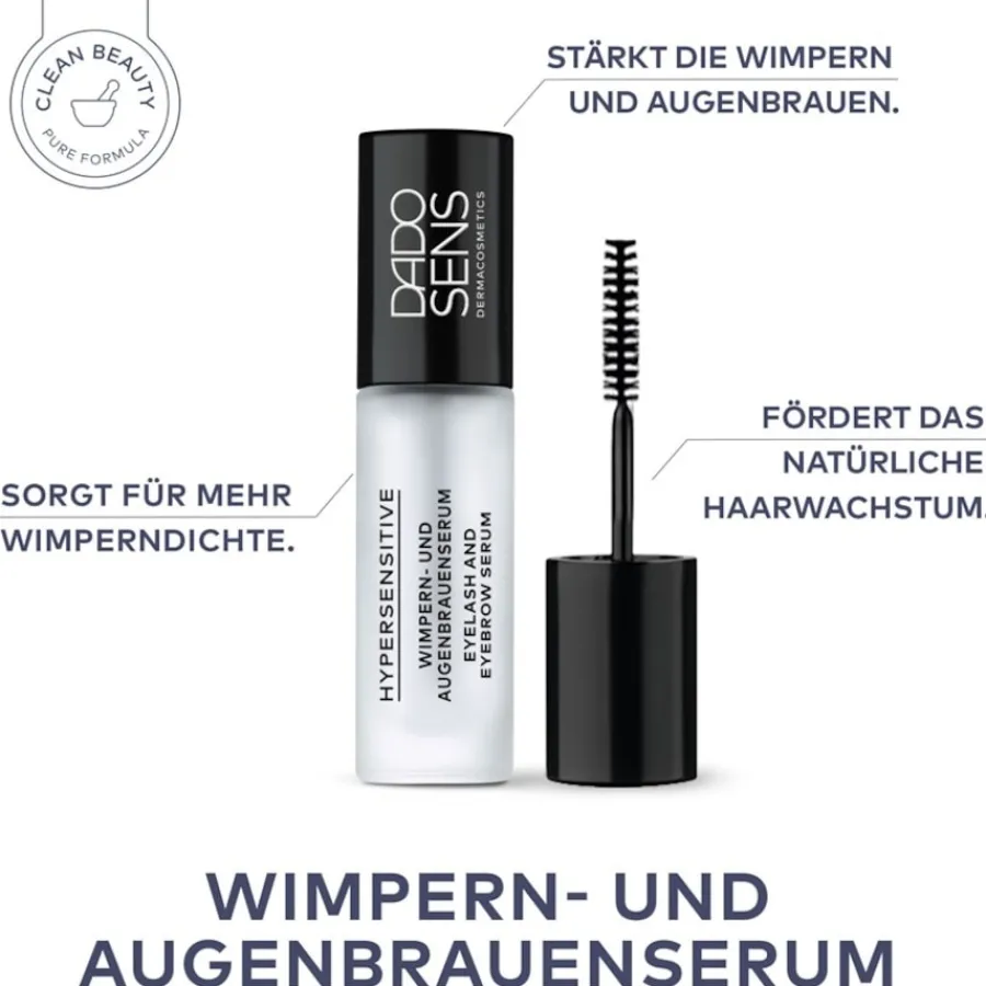 Das WIMPERN- UND AUGENBRAUENSERUM wurde von DADO SENS speziell für hypersensitive Augenpartien entwickelt. Die innovative Formel besteht aus einem einzigartigen Wirkstoff aus Wiesenklee- und Mungbohnen, der das natürliche Wachstum von bestehenden und neuen Wimpern sowie Augenbrauen stimuliert. Die Vitalität der Haarfollikel wird verbessert und vorzeitigem Haarverlust effektiv entgegengewirkt. So sorgt das WIMPERN- UND AUGENBRAUENSERUM für eine beeindruckende Dichte und mehr Volumen.