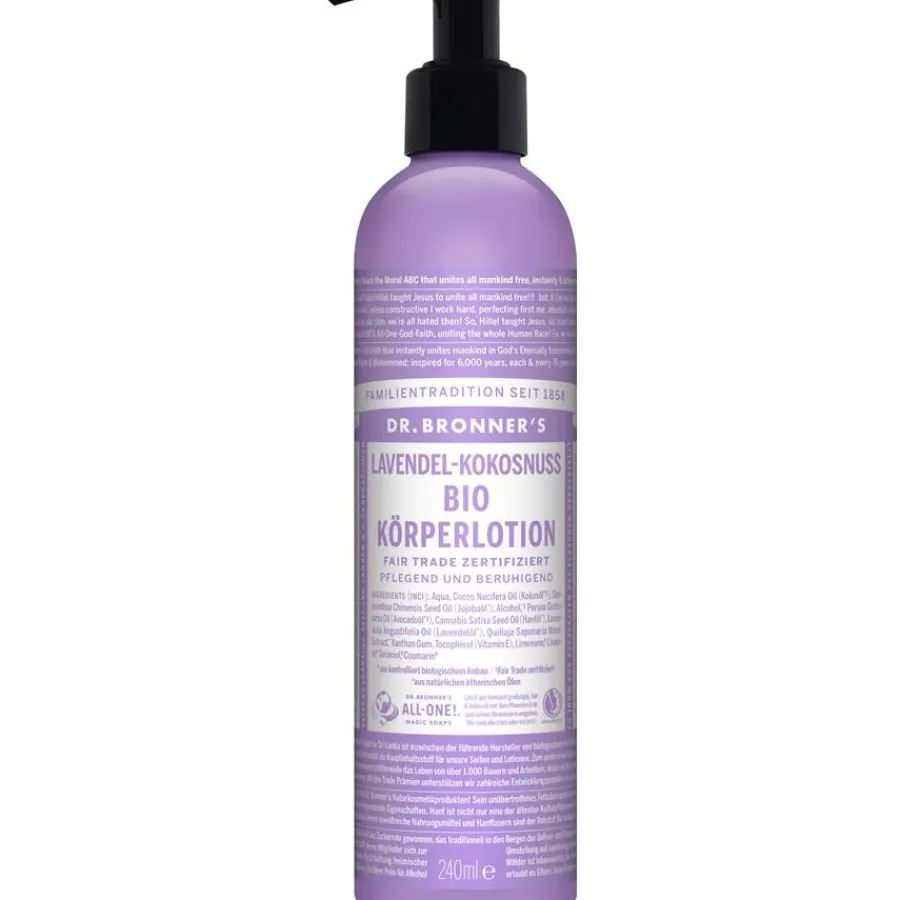 Anwendung der Dr. Bronner’s Lavendel-Kokosnuss Bio Körperlotion