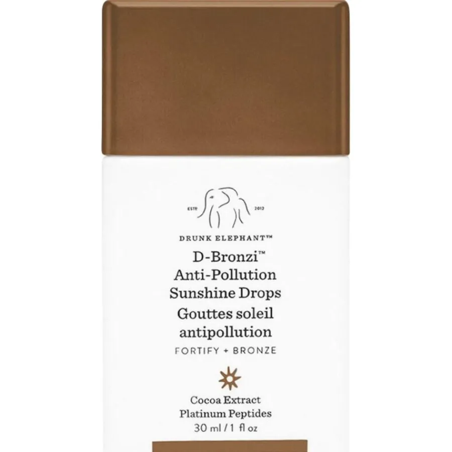Die Drunk Elephant Bronzing Drops sind Sonnenschein aus der Tube, jedoch ohne die schädlichen Auswirkungen. Omega-Fettsäuren-reiche, native Marula- und Johannisbeeren-Öle sowie Vitamin F (Fettsäuren) stellen sofort das empfindliche Gleichgewicht wieder her, das eine gesunde Barrierefunktion der Haut unterstützt. Gleichzeitig stärkt eine konzentrierte Mischung aus schützenden Antioxidantien die hauteigenen Abwehrkräfte gegen Umwelteinflüsse sowie Stress und schenkt ihr einen goldfarbenen Teint.
