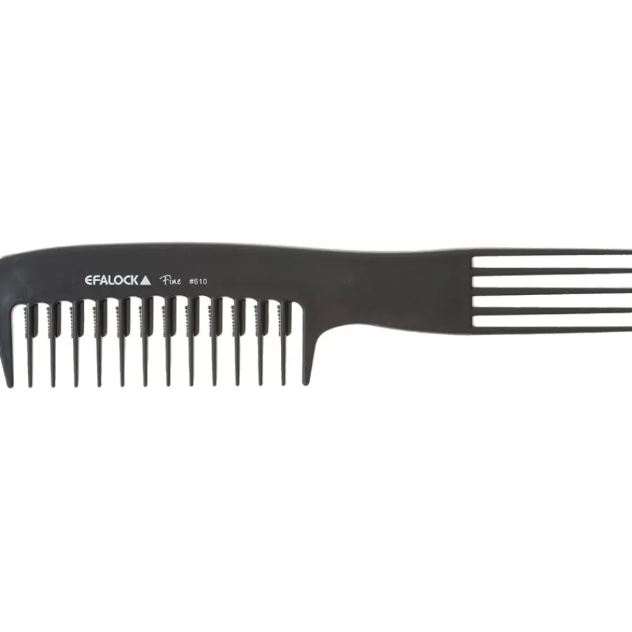 Der Fine Griffkamm #610 ist formstabil, er verträgt Wärme und Chemikalien. Das macht ihn besonders im Friseurbedarf zu einem beliebten Werkzeug. Haare Bürsten & Kämme sind oft für einen speziellen Haartypen oder eine spezielle Behandlung entwickelt. Nicht alle Kämme eignen sich für die Arbeit mit dem heißen Fön oder den Kontakt mit aggressiven Chemikalien. Beim Fine Griffkamm #610 ist das alles kein Problem: Efalock Professional hat hier Kämme entwickelt, die sich einfach für alles einsetzen lassen. Das innovative Material Polyacetat-Kunststoff bleibt trotz der stabilen Form flexibel, so dass der Kamm durch das Haar gleitet und absolut sanft zur Kopfhaut ist.