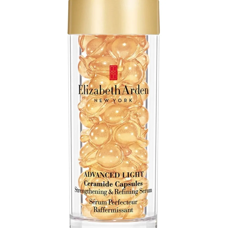 Das Advanced Ceramide Light Capsules Strengthening & Refining Serum ist mit einem pflanzlichen Komplex aus Alfalfa-, Oliven- und Kokosnussöl angereichert, der die Haut mit wertvollen Nährstoffen versorgt. Zusätzlich verbessert das omegareiche Tsubuki-Öl die Elastizität der Haut und erhöht ihren Feuchtigkeitsgehalt. Das Ergebnis der Hautpflege ist eine revitalisierte, weiche und straffe Haut, die strahlt und gesund glänzt. Das Serum von Elizabeth Arden ist klinisch und dermatologisch getestet, die biologisch abbaubaren Kapseln sind frei von Ölen und Konservierungsstoffen. Nach dem Öffnen der Kapsel wird das Serum auf die Fingerspitzen verteilt und sanft auf Gesicht und Hals aufgetragen.