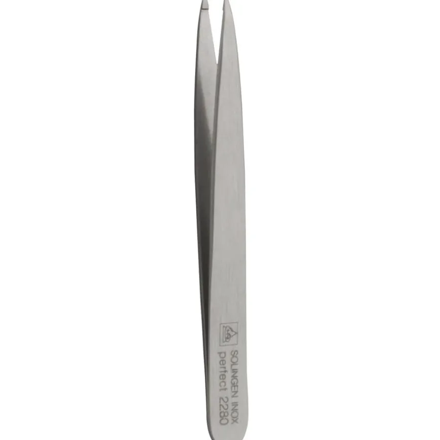 Die spitz zulaufende, 9,7 cm lange Pinzette aus dem Hause Becker in Solingen ist an den unteren Enden geschweißt. Der verwendete Edelstahl wird in besonderen Verfahren gepresst und gehärtet. Dadurch entsteht ein präzises Kosmetik-Instrument, dass eine sehr gute Federung und eine lange Lebensdauer hat. Pinzetten, aus dem Hause Becker Manicure, die aus INOX Edelstahl, rostfrei gefertigt sind, können zu medizinischen und kosmetischen Zwecken verwendet werden.