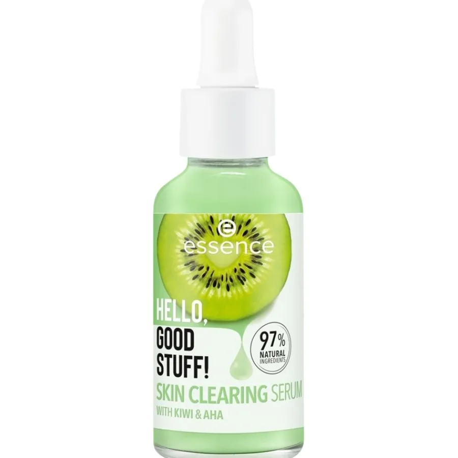Das Hello, Good Stuff! Skin Clearing Serum von Essence ist ein Hautpflege-Allrounder, den Sie am besten nach der Reinigung aber vor Ihrer Feuchtigkeitscreme verwenden. Schichten Sie bei Ihrer Hautpflege-Routine stets von der leichtesten und flüssigsten hin zur festesten und dicksten Textur! Neben der peelenden AHA-Säure wurde das Hello, Good Stuff! Skin Clearing Serum von Essence noch mit beruhigendem Kiwi-Wasser und Panthenol angereichert. Letzteres hat neben dem beruhigenden Effekt auch die Eigenschaft, den Zellaustausch zu beschleunigen. So erhält Ihre Haut eine wunderbar angenehme Pflegeroutine in nur einem Produkt, die zuerst peeled und anschließend direkt wieder beruhigt.