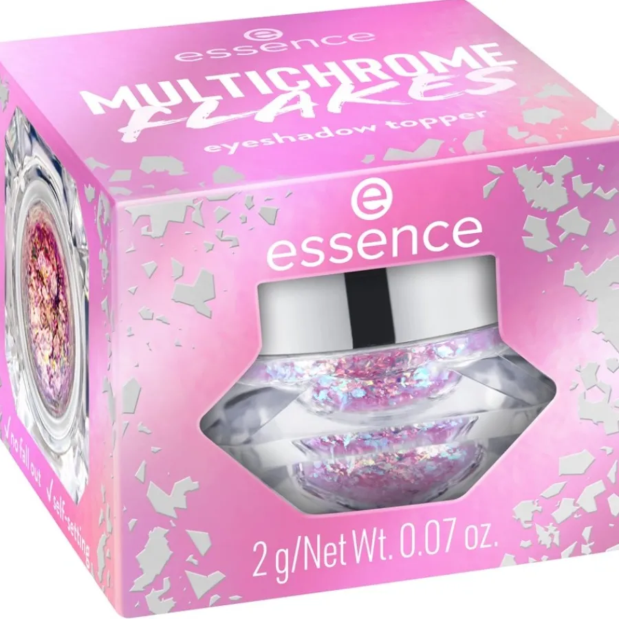 Der MULTICHROME FLAKES Eyeshadow Topper kann zum einen namensgebend als Topper verwendet werden. Dazu schminken Sie die Augen in einem Look ganz nach Ihrem eigenen Belieben. Mit einem feinen Pinsel setzen Sie mit den schimmernden Partikeln dann glitzernde Akzente auf den Lidern. Wer möchte, kann dieses Produkt aber auch als alleinigen Lidschatten nutzen. Es handelt sich um eine wasserbasierte Textur, sodass ein superleichtes Auftragen garantiert ist. Das Produkt trocknet schnell und bringt dabei gleichzeitig einen leicht kühlenden Effekt mit. Wie alle Produkte von der Marke Essence kommen bei diesem glitzernden Lidschatten keine Tierversuche zur Anwendung. Überdies ist das Produkt frei von Parabenen, Ölen, Alkoholen und Duftstoffen und kommt als veganes Produkt komplett ohne tierische Inhaltsstoffe aus.