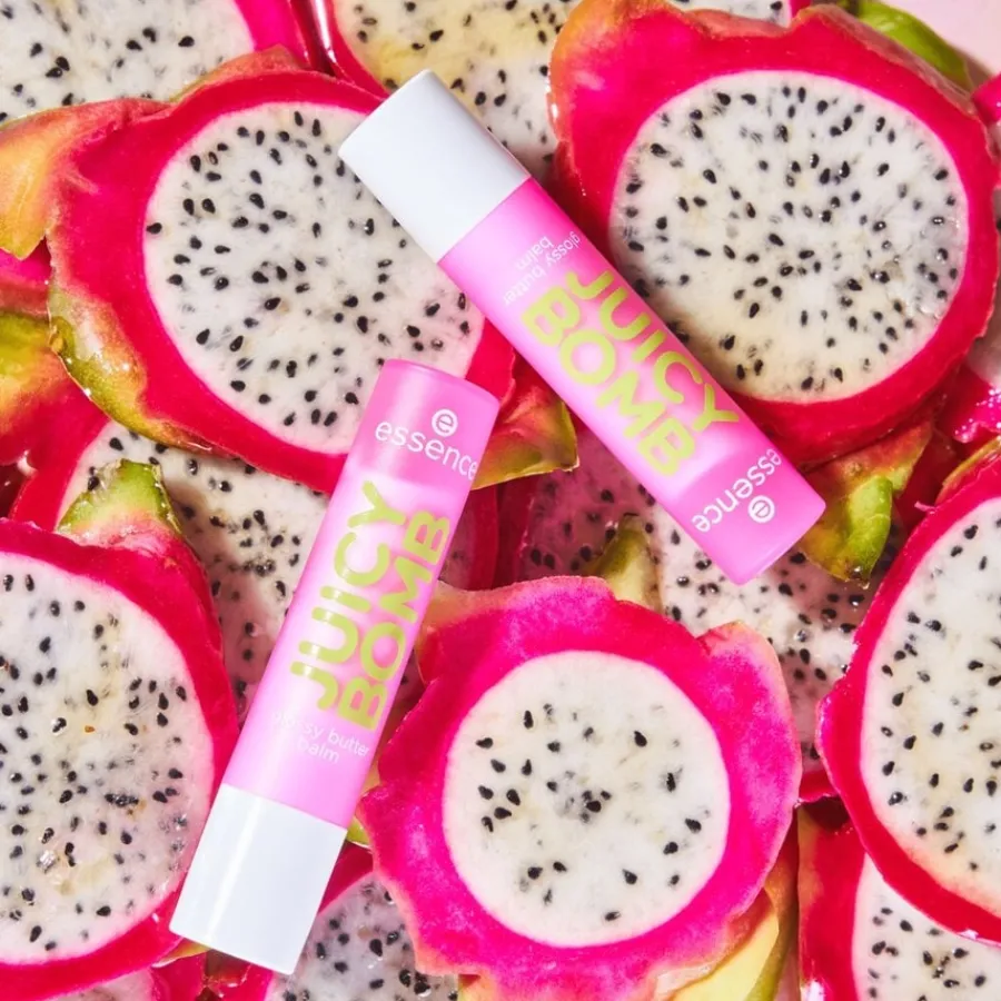 Das Top Finish, das der Butter Balm den Nutzerinnen und Nutzern bietet, verleiht den Lippen sofort die nach eigenem Geschmack und Stil gewählten Farbtöne, denn Essence bietet diverse Highlights wie So Berry Cute oder Wake Me Up Before You Coco. Der JUICY BOMB Glossy Butter Balm ist kinderleicht zu nutzen. Das Klicksystem der Verpackung gestaltet das Entnehmen und Dosieren sowohl mühelos als auch hygienisch. Durch das modern abgeschrägte Design der Verpackung wird das entspannte Nutzen des Produkts effektiv unterstützt. Entspannt setzen Veganerinnen und Veganer diesen Lip Balm von Essence ein. Rund um das Entwickeln dieser pflegenden Make-up-Ergänzung sind keine Inhaltsstoffe von Tieren ins Produkt gewandert.