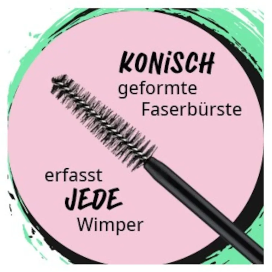 Mit dem Bürstchen der Essence Lash Princess False Lash Effect Mascara werden Ihre Wimpern optimal beim Tuschen erfasst und sauber getrennt. Fliegenbeine und störende Mascara-Klumpen sind so kein Problem mehr. Das Schwarz der Wimperntusche ist schön intensiv, die Wimpern werden ausdrucksvoll verdichtet, wodurch Ihr Augenaufschlag an verführerischer Dramatik gewinnt. Genauso wie bereits die erste Lash Princess Volume Wimperntusche, deren Nachfolgerin die Lash Princess False Lash Effect Mascara ist, wurde auch hier wieder auf ein für Essence so typisch verspieltes Design geachtet. Zur besseren optischen Unterscheidung jedoch ist das Design der False Lash Effect Mascara in Mint gehalten.