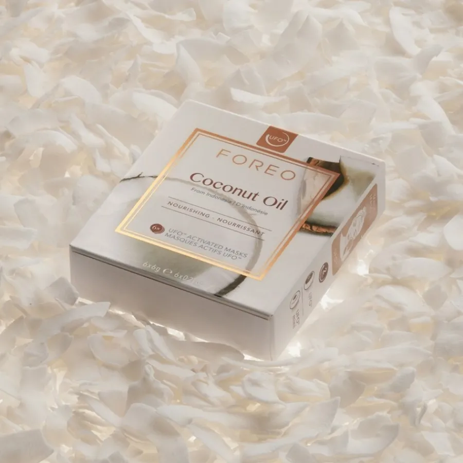 Foreo bringt alle natürlichen und wertvollen Inhaltsstoffe der Welt zusammen und bietet basierend darauf smarte Gesichtsmasken an. Die Hauptbestandteile der UFO Mask Coconut Oil sind Kokosnussöl aus Indonesien sowie Kokoswasser. Kokosnussöl stellt eine natürliche und reichhaltige Quelle an Feuchtigkeit dar. Durch die natürlichen Weichmacher und die feuchtigkeitsspendenden Inhaltsstoffe wird die Haut tief genährt. Kokosnusswasser steckt voller hautfreundlicher Nährstoffe wie Aminosäuren und Vitamin C. Durch die intelligente Maskenbehandlung wird die Haut auf natürliche Weise mit Feuchtigkeit versorgt und ein frischer Teint ist garantiert.