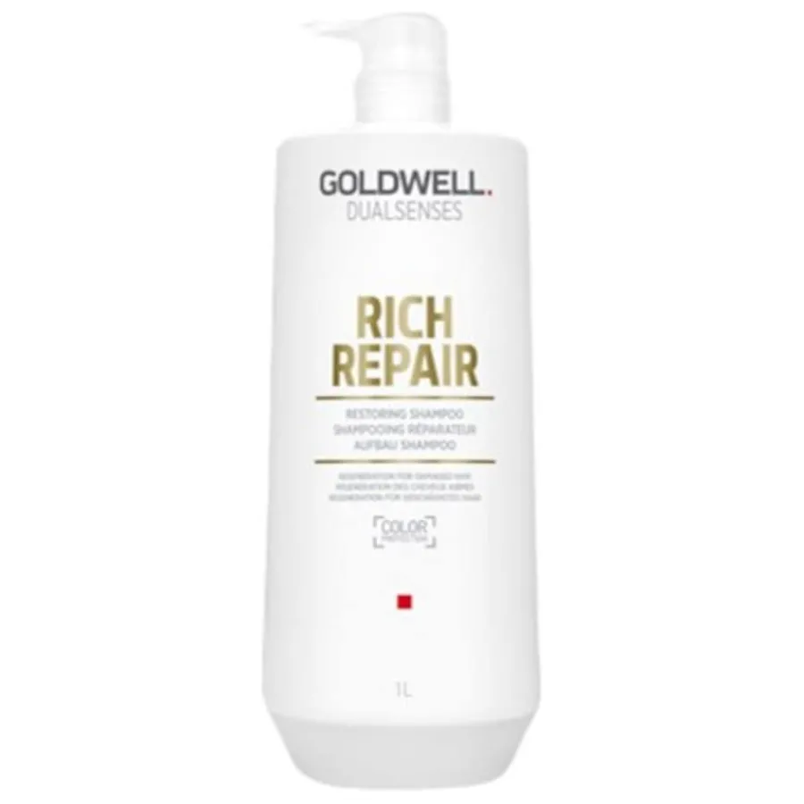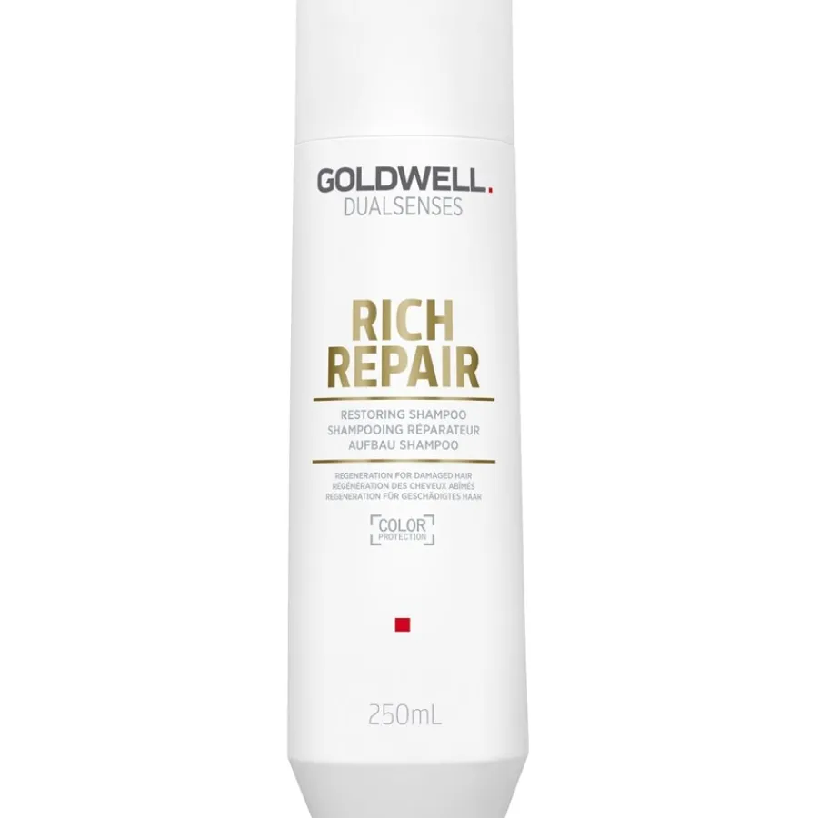Das Rich Repair Restoring Shampoo von Goldwell pflegt und reinigt Ihr Haar und sorgt für tiefenwirksame Regeneration. Selbst stark geschädigte und geschwächte Farbstrukturen werden durch die Kombination modernster Technologien verbessert und gestärkt. Massieren Sie das Produkt ins nasse Haar ein und schäumen Sie es kurz auf. Anschließend spülen Sie es gründlich aus. Bei Bedarf kann die Haarwäsche wiederholt werden. Pflegen Sie Ihr Haar regelmäßig mit dem Rich Repair Restoring Shampoo von Goldwell, und lassen Sie es in neuem Glanz erstrahlen!