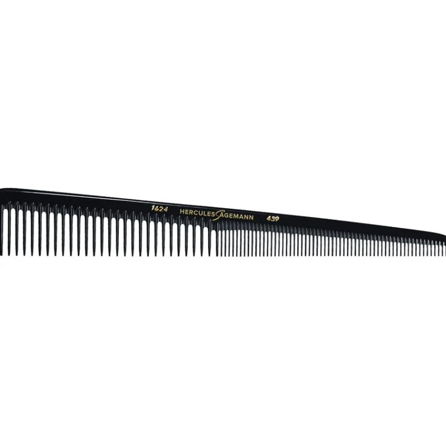 Der moderne und hochwertige Facon-Kamm ist mitperfekt geformten Zinken ausgestattet, die nach hinten schräg verlaufen. Damit ist ein besonders flexibles Schneiden der Haare möglich. Die perfekt geformten Zinken sind gleichzeitig sanft abgerundet. Für einen effizienten Schnitt ist der Kamm mit zwei Seiten ausgestattet, die Seite mit den etwas breiteren Zinken ist für das Deckhaar gedacht, die schmaleren Zinken dienen vor allem für die Übergänge. Die Haare-Bürsten & Kämme des Labels Hercules Saegemann werden von der New-York Hamburger Gummi-Waaren Compagnie (NYH) hergestellt, einem Unternehmen, das sich auf die Herstellung von Produkten für den Friseurbedarf spezialisiert hat. Die vielfältigen Bürsten, Kämme und Scheren werden weltweit exportiert. Bestellen Sie die Haare-Bürsten & Kämme des Labels Hercules Sägemann bei Parfumdreams. Überzeugen Sie sich von der ausgezeichneten Qualität der Kämme.