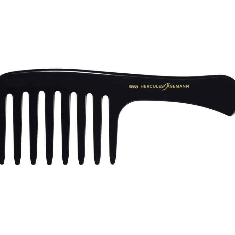 Der aus edlen Materialien hergestellte Kamm ist eine Augenweide. Dabei ist es nicht nur der feine Glanz, der das Modell zu einem echten Hingucker macht. Die extra breit geformten Zinken mit den abgerundeten Spitzen sowie der breite Griff sind geradezu ideal, um traumhaft schöne Wellen oder Locken in das Haar zu zaubern. Gleichzeitig ist der Locken-Kamm Modell 5660 antistatisch, so wie viele der Haare Bürsten & Kämme des Labels Hercules Sägemann. Dadurch verhindern sie, dass es beim Stylen zu einem Aufladen der Haare kommen kann. Am oberen Rand des Locken-Kammes prangt in edler Schrift der Name Hercules Saegemann sowie die entsprechende Produktnummer. Die Locken-Kämme und weiteren Kämme und Bürsten des Labels werden von der New-York Hamburger Gummi-Waaren Compagnie (NYH) in Hamburg hergestellt, einem Ausstatter für Friseurläden in der ganzen Welt. Das Unternehmen ist bereits seit über 150 Jahren erfolgreich auf dem Markt tätig.