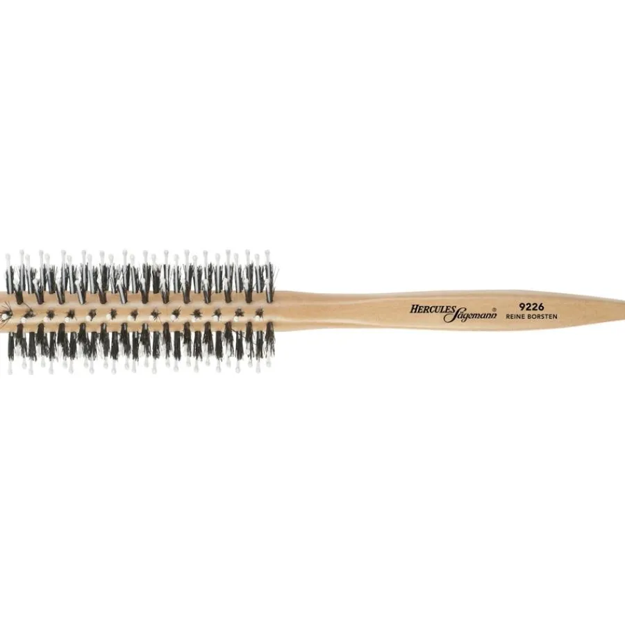 Sie sind auf der Suche nach einer hochwertigen Bürste zum Stylen der Haare? Bürsten & Kämme aus dem Hause Sägemann werden Sie ganz bestimmt ebenfalls überzeugen. Die helle Holzrundbürste Modell 9226 ist eine für kürzere bis mittellange Frisuren geeignete Bürste, die sich durch die Verwendung wertiger Materialien sowie eine gute Funktionsweise auszeichnet. Der Kopf der Haarbürste verfügt über Natur- und Kunststoffborsten, die auf dem Modell gleichmäßig angeordnet sind. Die Borsten aus Kunststoff sind an der Spitze sanft abgerundet, um eventuelle Verletzungen zu verhindern. Der Griff ist aus Holz gefertigt und körperfreundlich geformt. Die Rundbürsten des Labels liegen gut in der Hand und ermöglichen ein entspanntes Stylen.
