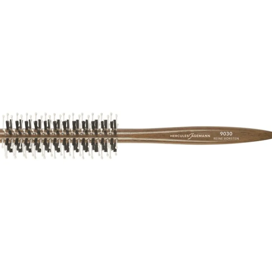 Mit der Holzrundbürste Modell 9030 entscheiden Sie sich für ein hochwertiges Produkt, das vor allem für das Föhnen und Stylen kürzerer bis mittellanger Haare geeignet ist. Der Kopf der Bürste besteht aus Natur- und Kunststoffborsten, die auf dem Bürstenkopf gleichmäßig angeordnet sind. Um Haare und Kopfhaut vor eventuellen Verletzungen zu schützen, sind die Borsten aus Kunststoff fein abgerundet. Die Borsten sorgen beim Stylen für eine leichte Massage von Haar und Kopfhaut. Besonders edel und perfekt geformt ist der Griff der Rundbürste. Er überzeugt durch sein trendiges, naturnahes Design sowie die körpernahe Form. Der Griff trägt den Namenszug des Labels sowie die Nummer des Modells. Überzeugen Sie sich von der hohen Qualität der Rundbürsten des Labels Hercules Sägemann. Sie können die Rundbürste Modell 9030 direkt im Shop Parfumdreams bestellen.
