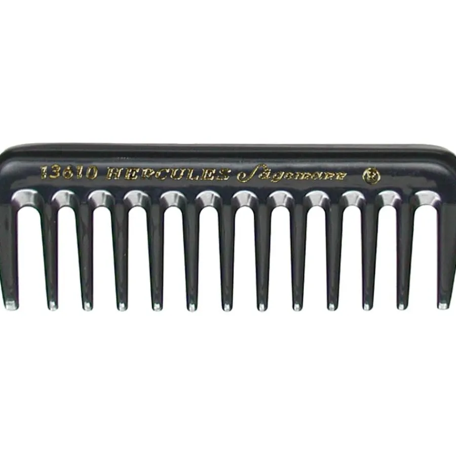 Die Styling-Kämme des Labels Hercules Sägemann zeichnen sich durch ihre kompakte Form sowie die hochwertigen Materialien aus. Der Kamm ist aus Ebonit hergestellt, einem aus natürlichem Kautschuk gewonnenen Werkstoff, der sich vor allem durch seine hohe Biegsamkeit auszeichnet. Die breiten Zinken sowie die Zwischenräume ermöglichen das Kämmen auch größerer Haarpartien. Die am Rand leicht abgerundeten Zinken schützen Haare und Kopfhaut während des Kämmens und Frisierens vor eventuellen Verletzungen. Der breite Griff des Modells sorgt dafür, dass der Kamm gut in der Hand liegt. Am oberen Rand prangt in wunderschönen goldenen Buchstaben der Name Hercules Sägemann sowie die Nummer des Modells. Das Label Hercules Saegemann gehört zu dem Hersteller New-York Hamburger Gummi-Waaren Compagnie, einer Firma, die bereits seit mehr als 150 Jahren Haare-Bürsten & Kämme sowie Scheren für Friseurläden anfertigt. Die Erzeugnisse exportiert der Hersteller in viele Länder der Welt. Bestellen Sie den Styling-Kamm Modell 13610 und die weiteren Haare-Bürsten & Kämme bei Parfumdreams.