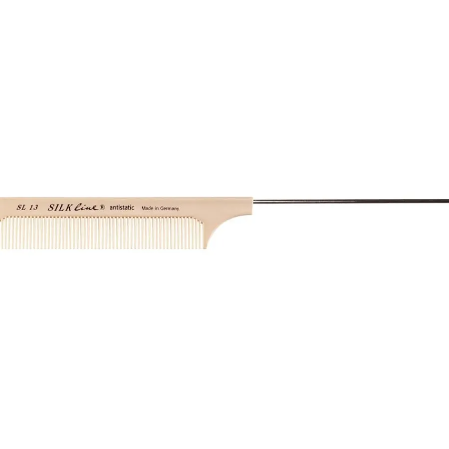 Der Technikkamm Modell SL13 verfügt über Haare und Kopfhaut schonende Zinken, die ein sanftes und gleichzeitig exaktes Kämmen und Frisieren der Haare ermöglichen. Dafür sind die Zinken an der Spitze zusätzlich leicht abgerundet. Mit dem Modell lassen sich viele aktuelle Frisuren anfertigen und die Haare beispielsweise auch toupieren. Der Nadelstiel aus Metall dient zum Fixieren der fertigen Frisur. Die Silk Line des Labels bietet elegante Technikkämme, die gleichzeitig über hervorragende Materialeigenschaften verfügen. Die Kämme sind antistatisch, das bedeutet, dass sich die Haare während des Frisierens nicht aufladen.Das Label Hercules Sägemann gehört zu der New-York Hamburger Gummi-Waaren Compagnie, einem Konzern, der sich auf die Herstellung professioneller Güter für Friseurgeschäfte spezialisiert hat. Die hochwertigen Haare-Bürsten % Kämme des Labels sind Profifriseuren weltweit bekannt und werden von diesen gerne genutzt. Bestellen Sie den eleganten Kamm Modell SL 13 sowie weitere Technikkämme des Labels Hercules Saegemann im Shop von Parfumdreams.