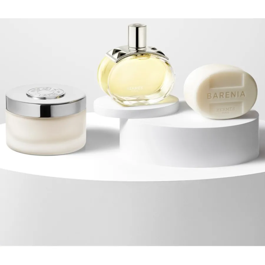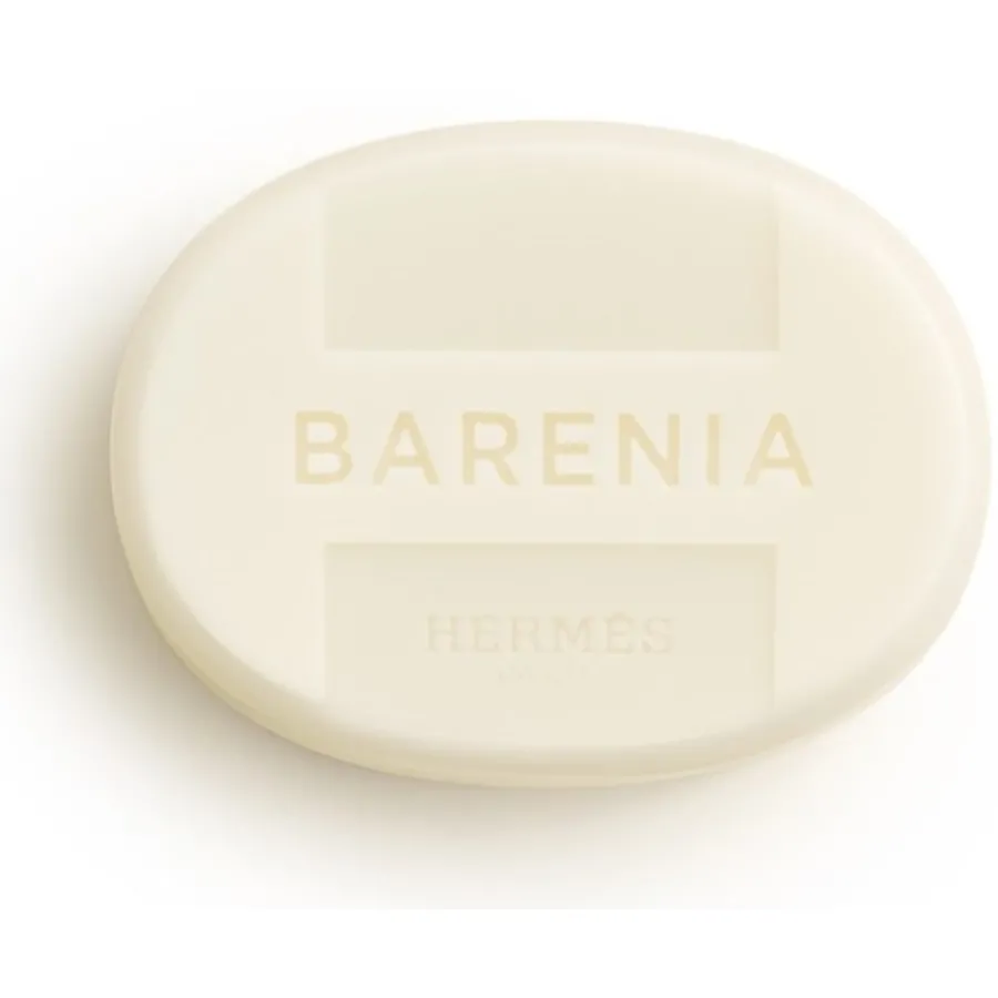 DIE KREATION Barénia ist ein hautschmeichelndes Parfum, das Kraft und Sanftheit miteinander verwebt.Es drückt die Facetten einer Frau aus, die instinktiv und fesselnd ist. Einer Frau, die nichts aufhält. Der Inbegriff von Freiheit.Der Duft des Eau de Parfum Barénia findet sich auch in der parfümierten Seife Barénia wieder, die angenehm schäumt, sanft reinigt und der Haut einen zarten Wohlgeruch verleiht. DAS OBJEKT Auf der handlichen, ellipsenförmigen Seife prangt das ikonische H des Hauses.DIE DUFTNOTEN Barénia verbindet den betörenden Duft der Schmetterlingslilie mit der Zartheit der Wunderbeere und hüllt beide in warmes Eichenholz und tiefgründiges Patschuli.