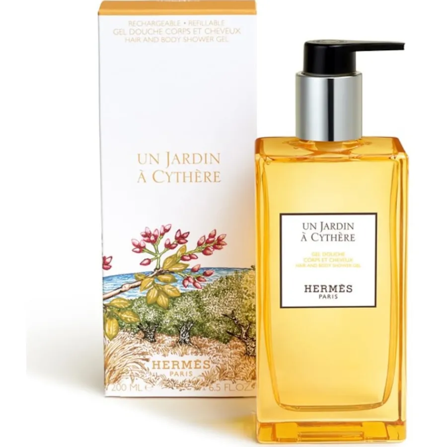 Zelebrieren Sie eine ausgiebige Wellnessdusche nach einem anstrengenden Tag oder gönnen Sie sich gleich nach dem Aufwachen den edlen Frische-Kick mit dem Un Jardin à Cythère Hair and Body Shower Gel. Es erinnert an einen bunten und wilden Garten voller exotischer Pflanzen. Kosten Sie die Duftnuancen aus, die sich nach und nach entfalten und die Sie wahrscheinlich bereits vom Spray Un Jardin à Cythère kennen. Zunächst ist es die leicht holzig anmutende Zitrone, die für Erfrischung sorgt und gerade bei einer morgendlichen Dusche wunderbar belebt. Danach betören die intensiven Gras- und Olivenbaumakkorde, die Hermès geschickt mit der würzigen Pistazie verbindet. Das Hair and Body Shower Gel ist aber auch aus praktischer Sicht ein echter Volltreffer. Denn wie der Name schon sagt: Sie können es sowohl für die Haar- als auch für die Hautpflege verwenden. Ideal auch bei einer tatsächlichen Urlaubsreise!