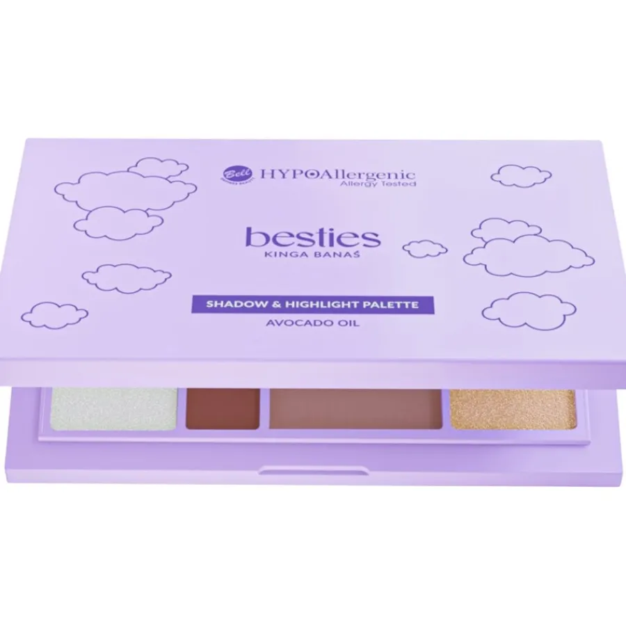 Die x Besties Shadow & Highlight Palette der polnischen Kosmetikmarke Bell HYPOAllergenic wurde von Kinga kreiert und bietet unendlich viele Möglichkeiten für ein einzigartiges Tages- und Abend-Make-up. Die Palette kombiniert samtig-weiche Lidschatten und strahlende Highlighter. Sie lassen sich mühelos auftragen und verblenden. Die langanhaltende Formulierung sorgt für ein makelloses Augen-Make-up, das weder bröckelt noch verblasst. Sie ist mit pflegendem Avocadoöl angereichert, spendet Feuchtigkeit und verhindert ein Austrocknen der Haut. Die hohe Pigmentierung erzeugt intensive Farbergebnisse mit nur einem Auftrag und ist perfekt für natürliche Tageslooks oder glamouröse Abend-Make-ups geeignet.