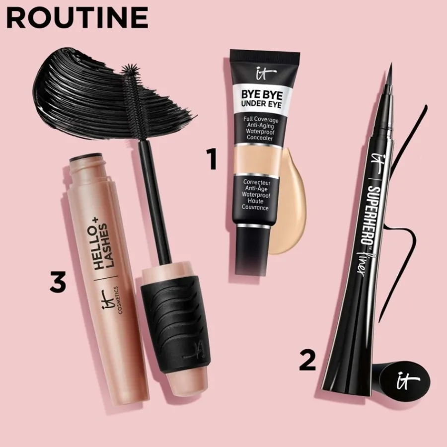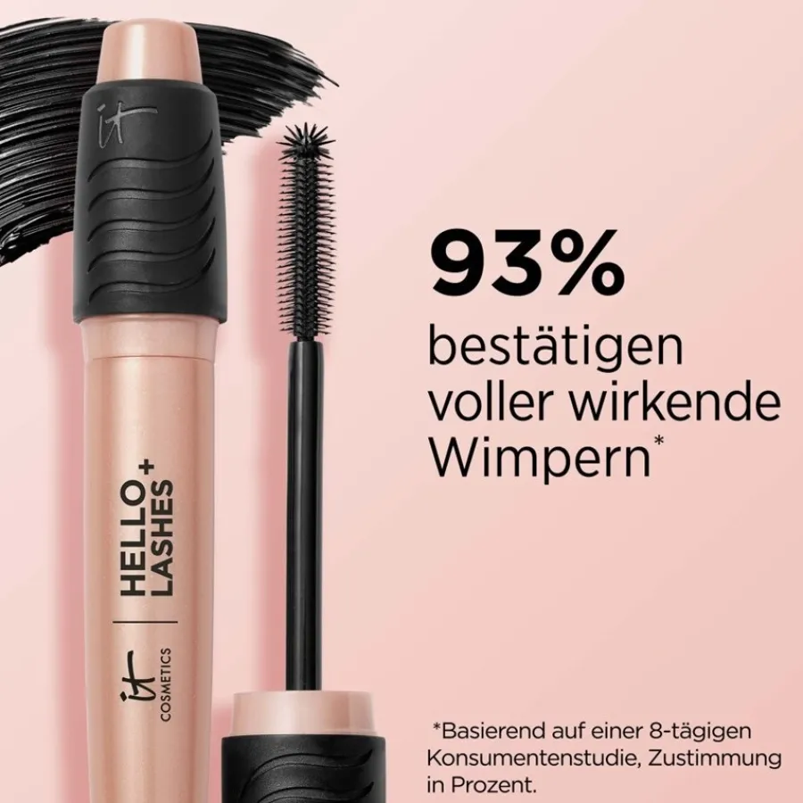 Für ein perfektes Make-up setzen Sie die Bürste der Hello Lashes Volumizing Mascara + Lash Serum von it-Cosmetics am Wimpernkranz an und ziehen sie mit leicht ruckelnden Bewegungen bis zur Spitze. Für einen voluminösen Look tragen Sie mehrere Schichten auf. Das Abschminken der Mascara ist schonend, schnell und einfach, sodass die Wimpern vor Haarbruch geschützt sind.