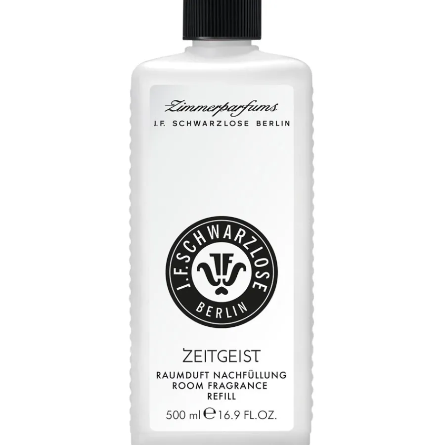 Die schmucklose Flasche der Nachfüllung für den Diffuser beinhaltet genug Raumduft, um den schwarzen Flakon aufzufüllen, wenn er nach Tagen und Wochen zur Neige gegangen ist. Die Moleküldüfte Nebulone(R), Edenolide(TM), Amber Extreme(TM) und Calone Alge Absolue vereinen sich bei dem Raumduft Zeitgeist mit Tasmanischer Scheinulme und Perubalsam. J.F. Schwarzlose Berlin hat einen Duft kreiert, der sich präsent und deutlich wahrnehmbar zeigt, der aber nicht aufdringlich ist: einfach perfekt für das Büro, das Wohnzimmer oder das Gästezimmer.