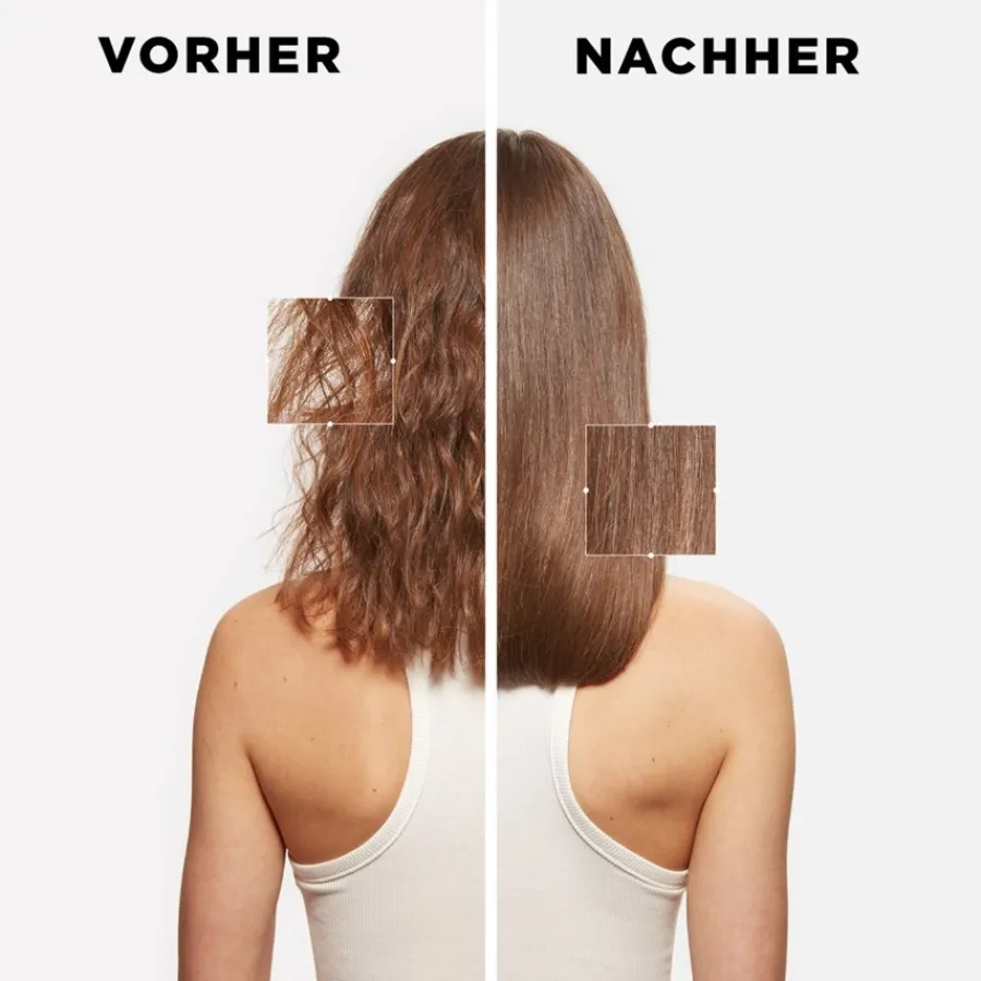 Mit den hitzeaktiven Inhaltsstoffen werden die Haare schützend und pflegend versiegelt. Krauses und geschädigtes Haar wird repariert und weiteren Schäden wird vorgebeugt. Haarbruch wird um bis zu 87 Prozent reduziert. Die Haare werden durch die Keratine Thermique Creme von Kerastase Paris angenehm weich und wunderbar glatt. Die Haare erhalten darüber hinaus einen attraktiven gesunden Glanz. Zu den Inhaltsstoffen der Kosmetik gehören Dimethicone, Arginin, Serin, Weizenprotein und Xylose als Hitzeschutz.