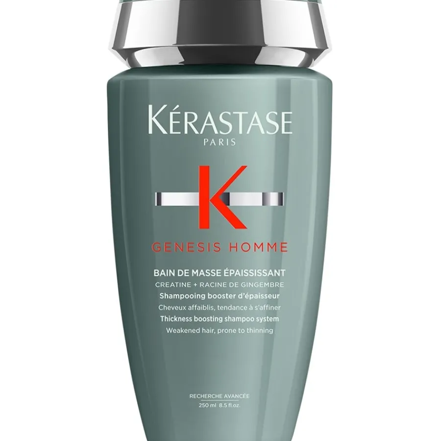 Das Genesis Homme Bain De Masse Epaississant von Kérastase stärkt die Haare, verbessert ihre Dichte und lässt sie voller wirken. Es hydratisiert die Haare tiefenwirksam, reinigt sie schonend und pflegt sie geschmeidig weich. Seine Formel ist die ideale Wahl bei schütteren, dünnen und schwachen Haaren. Tragen Sie die Textur auf Haare und Kopfhaut auf und massieren sie mit kreisenden Bewegungen ein. Nach kurzer Einwirkzeit spülen Sie das Produkt gründlich aus. Genießen Sie vitales, dichtes Haar!
