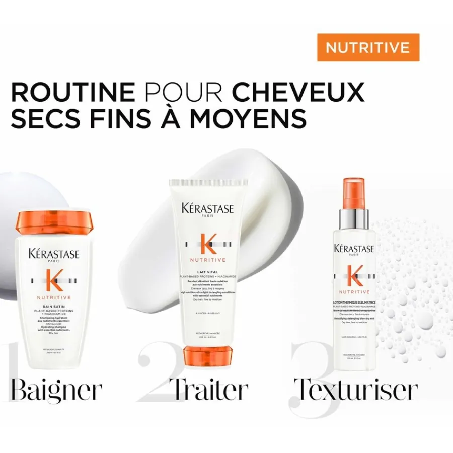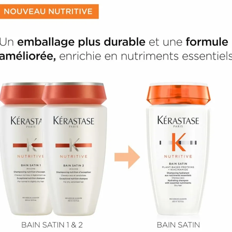 Das Nutritive Bain Satin Shampoo von Kérastase verwöhnt die Haare mit effektiver Reinigung und Pflege, bringt sie zum Glänzen und verleiht ihnen ein tolles Volumen. Trockene Haare schützt es vor Feuchtigkeitsverlust, indem es für einen ultimativen Feuchtigkeits-Boost sorgt und die Flüssigkeit lang anhaltend in der Haarstruktur speichert. Es pflegt die Haare geschmeidig weich, nährt sie und kräftigt ihre Schutzbarriere. Dank seiner cremigen, zarten Gel-Formel erzielt es luftig leichte, schwerelose Ergebnisse. Tragen Sie das Shampoo auf die nassen Haare auf und lassen es aufschäumen. Massieren Sie die Formel sanft in Längen und Kopfhaut ein und spülen sie danach gründlich aus. Erleben Sie seidiges, fülliges Haar mit brillantem Glanz!